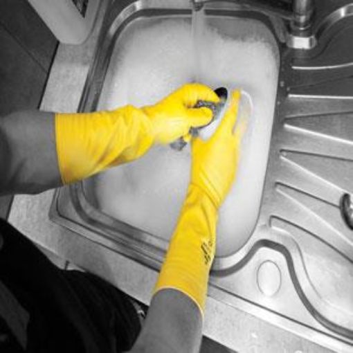 Deep Sink is a premium quality extra long (38cm) household natural rubber glove, in yellow. It is Cat I and has a slip resistant pattern on the palm.