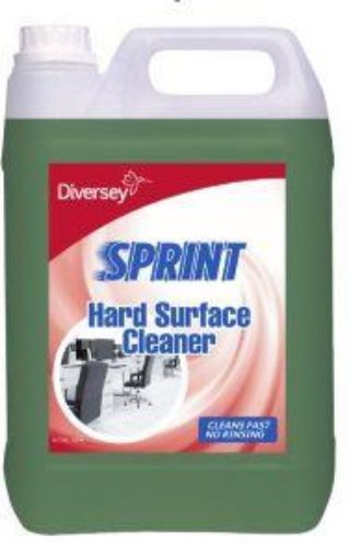 Multi-purpose Hard Surface Cleaner. Sprint Hard Surface Cleaner 5 litre is the ideal product for cleaning unpolished floors and large hard surface areas such as walls and paintwork. Sprint's unique formula of soaps and surfactants removes even the toughest dirt and grime in seconds and yet rinses away quickly and easily. Can be diluted.